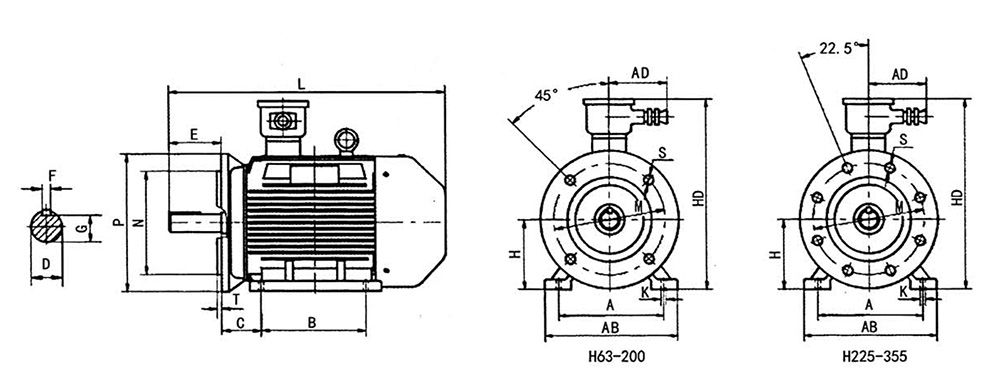 This series have flame proof performance in accordance to GB3836.1 Explosive Atmosphere Electrical Apparatus, Part 1, General Requirements and GB3836.2 Explosive Atmosphere Electrical Apparatus, Part 2, Apparatus with Flameproof Type “d” Enclosure. Mechanical performance are in accordance with JB/T7565.1-2011 Specification of three-phase flameproof asynchronous motor -Part 1 : Series YB3 Flameproof Three-Phase Asynchronous Motor ( frame size 63-355) .